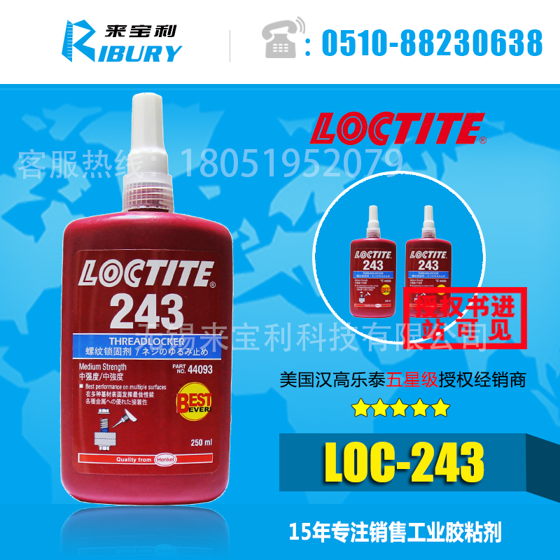 乐泰牌的正品乐泰 243螺纹锁固胶 乐泰243螺丝胶 蓝色厌氧胶产品:估价:1,规格:243,产品系列编号:齐全 发布日期:2016-3-4